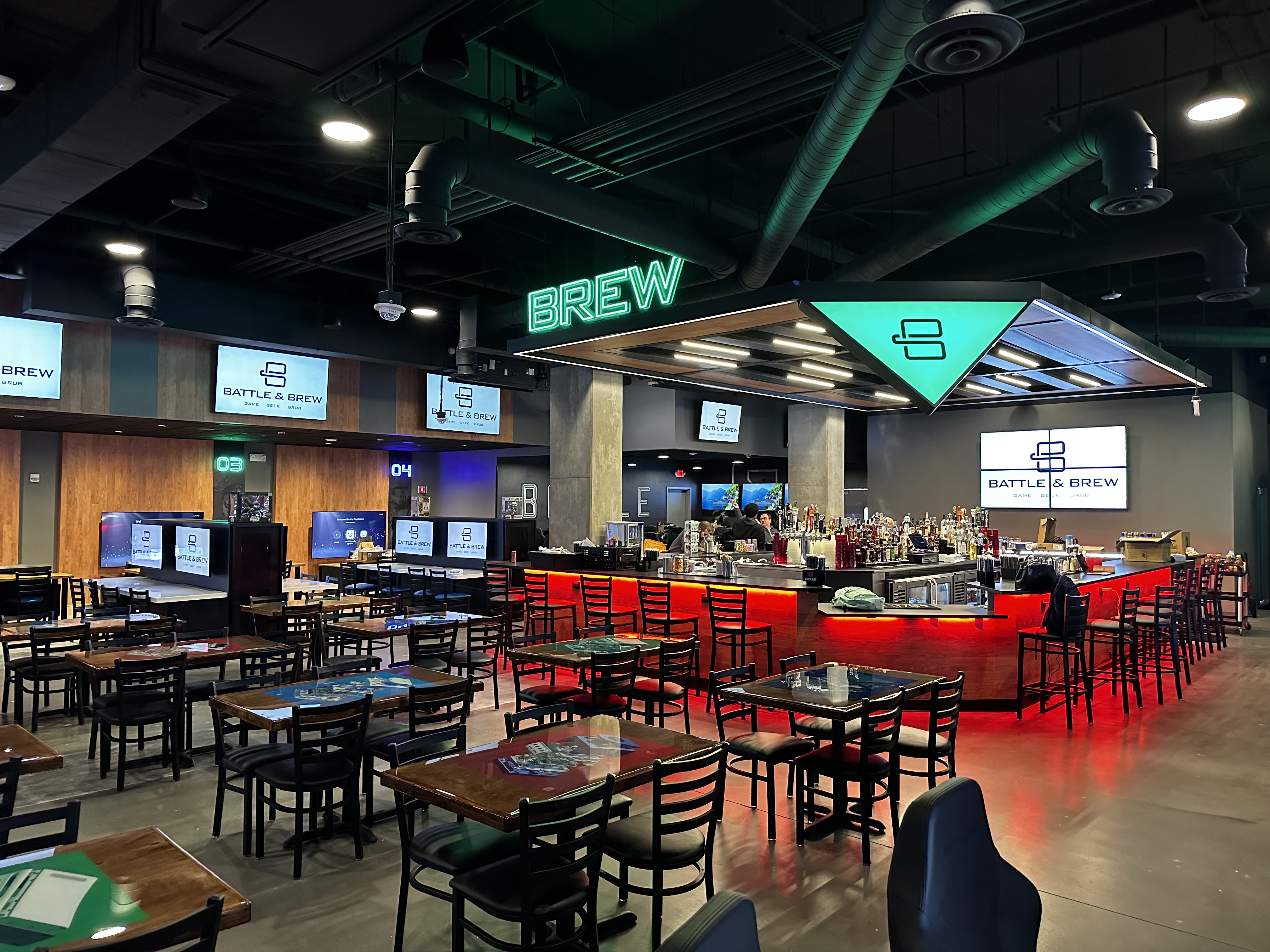 Battle & Brew in Sandy Springs, located at 5920 Roswell Rd A120, is a unique spot that combines great food, craft drinks, and an immersive gaming experience. Originally founded in 2005 in Marietta, it moved to this much larger Sandy Springs location in 2014, expanding its gaming stations, craft beer selection, and adding a full kitchen that serves delicious upscale American dishes late into the night. The venue is designed as a welcoming haven for geeks, gamers, and anyone looking for a fun night out, with over 2,500 games available across consoles like PlayStation 5, Xbox Series X/S, and Nintendo Switch, plus a huge collection of board games.