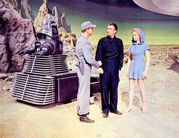 Vibrant sci-fi merchandise at Forbidden Planet storefront.