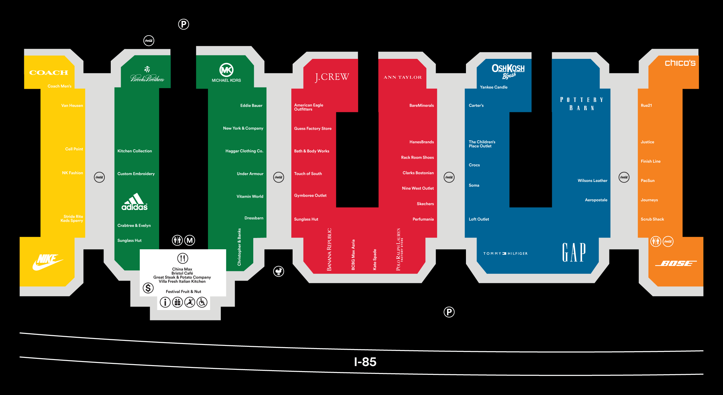 While some shoppers have noted that the mall has fewer stores than before and that deals might not be as deep as expected, it still offers a decent variety of shops. The food court is small and could use more variety, but nearby restaurants like Outback and Cracker Barrel provide good dining options close by. Overall, it’s a straightforward, no-frills outlet experience that’s handy if you’re in the area and want to pick up some basics or check out familiar brands without traveling far.