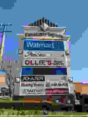Shopping center sign with “Prices Mooresville Consumer Square” text.