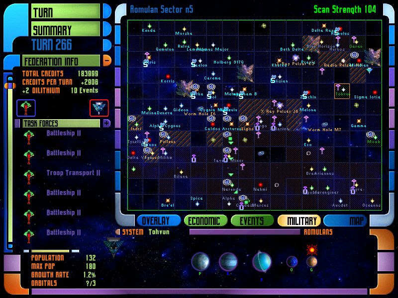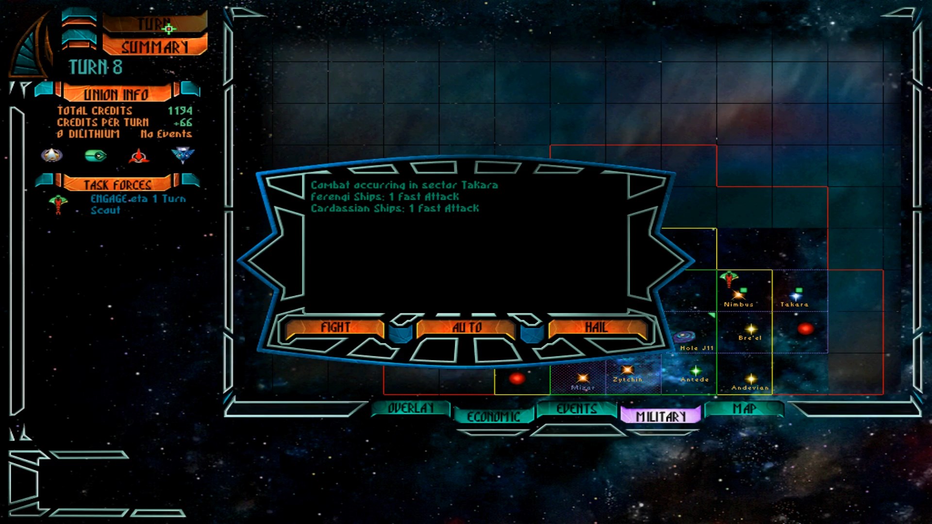 Star Trek: Birth of the Federation is a classic turn-based strategy game that lets you take command of one of five major Star Trek races—like the Federation, Klingons, or Romulans—with the goal of controlling 60% of the galaxy. The gameplay starts off simple, focusing on exploration, colonization, and building up your empire’s infrastructure. You manage everything from starship movements and colony development to technology research, diplomacy, espionage, and military combat. It’s a bit like Master of Orion but with a Star Trek twist, where each race behaves true to its personality in the series—the Klingons are aggressive, the Ferengi are sneaky, and the Federation tends to be diplomatic.