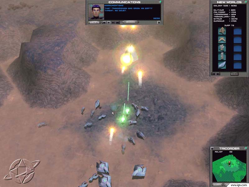Star Trek: New Worlds is a real-time strategy game that lets you dive into the Star Trek universe like never before, but this time, the action happens on the planet’s surface. It features an advanced 3D engine where you can rotate and zoom in on detailed landscapes, from mountains to lakes, creating a visually immersive experience. You get to command fleets of combat vehicles and build colonies with various structures, such as hydroponics labs and photon artillery launchers. The game offers three playable factions: the Federation, Klingon Empire, and Romulan Star Empire, each with unique campaigns and missions.
