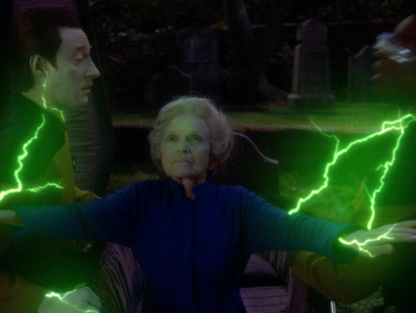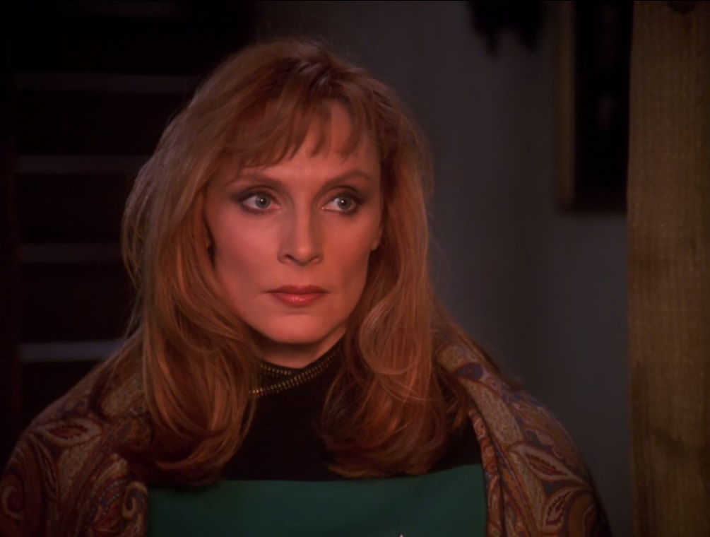 The episode explores themes of possession, consent, and family legacy, but it also drew criticism for its plot holes and the uncomfortable dynamic between Beverly and Ronin, which some viewers interpret as a form of coercion or mind control. Despite its flaws, “Sub Rosa” stands out for its atmospheric storytelling and its departure from typical TNG episodes, offering a darker, more mysterious narrative. Ultimately, Beverly confronts and defeats Ronin, breaking the cycle of his influence over her family.