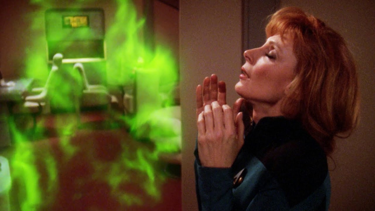 The Sub Rosa episode from Star Trek: The Next Generation is a unique and somewhat eerie installment centered on Dr. Beverly Crusher. After attending her grandmother Felisa Howard’s funeral on the colony planet Caldos IV, Beverly becomes deeply involved with a mysterious figure named Ronin, who seems to be connected to her grandmother’s past in a supernatural way. Ronin is a ghostly presence who tries to “merge” with Beverly, exerting a strange influence over her, even causing her eyes to turn green like her grandmother’s. This leads Beverly to consider leaving Starfleet to take over her grandmother’s healing work on the colony.