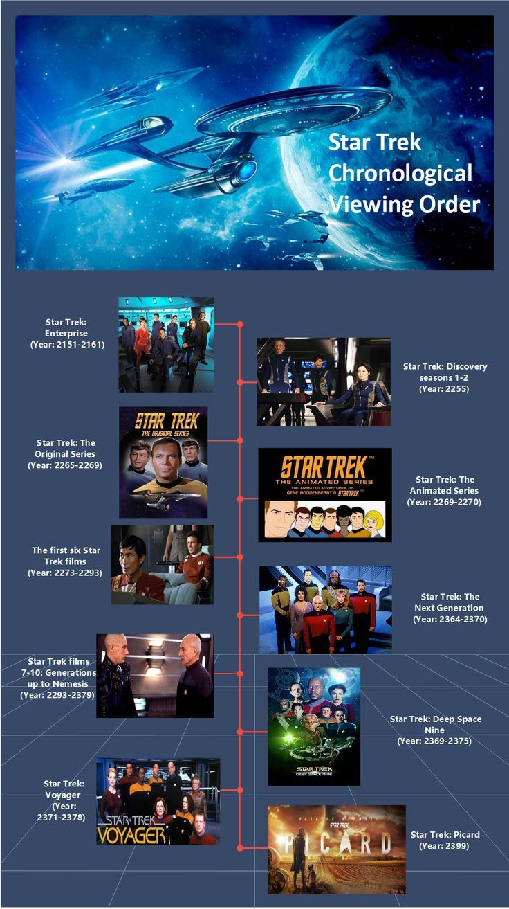 After the original series and its animated continuation, the timeline moves forward to Star Trek: The Next Generation (2364–2370), which introduces a new crew aboard a more advanced Enterprise. Following that, Deep Space Nine and Voyager run through the late 2360s and into the 2370s, exploring different parts of the galaxy and new challenges. Finally, newer shows like Star Trek: Picard and Star Trek: Prodigy continue the story into the late 24th century and beyond. Watching in this order lets you experience the evolution of Star Trek’s universe and storytelling across decades.