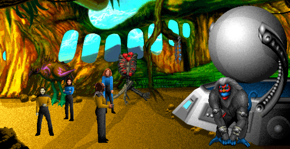Star Trek: The Next Generation – A Final Unity is a classic adventure game that really captures the feel of being aboard the Enterprise. You step into the shoes of Captain Picard and his crew, juggling decisions on the bridge and leading away missions on mysterious planets. The story kicks off with a tense encounter involving a Garidian scout ship fleeing Romulan space, which quickly unfolds into a deeper mystery about an ancient alien race called the Chodak and their powerful Unity Device. This device holds immense power and raises some serious ethical questions, true to Star Trek’s spirit.