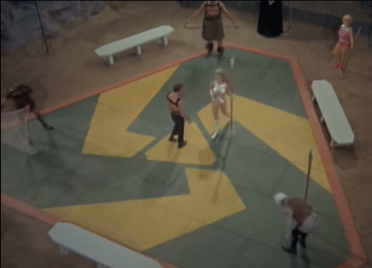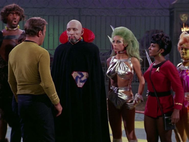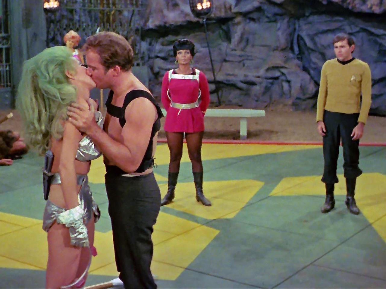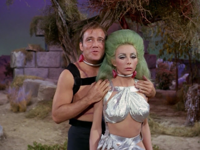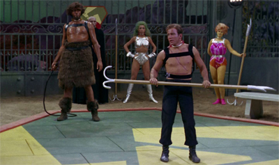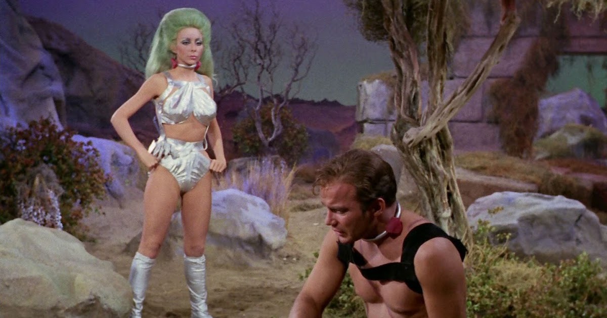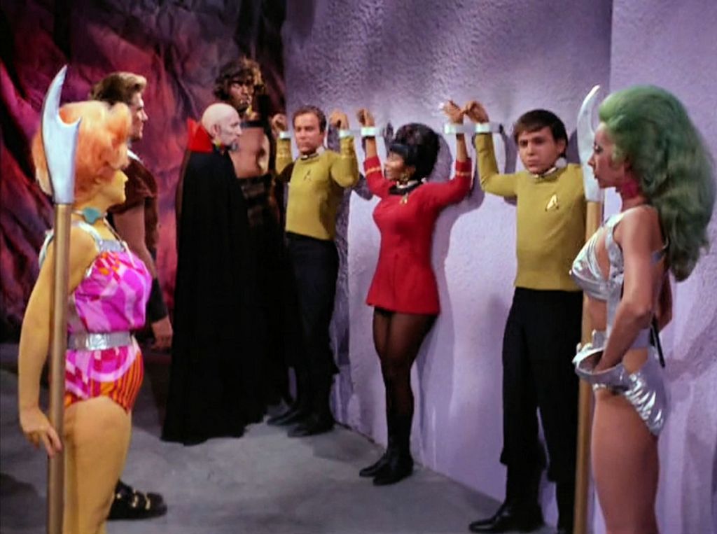 In The Gamesters of Triskelion, a classic Star Trek episode from 1968, Captain Kirk, Uhura, and Chekov are abducted and forced into slavery on a distant planet called Triskelion. They become gladiators, trained to fight for the amusement of three disembodied beings known as the Providers. Each captive wears a “collar of obedience” that punishes disobedience, and they are assigned trainers called “thralls,” with Kirk’s being Shahna, a striking and complex character who starts as an opponent but gradually shows a softer side.
