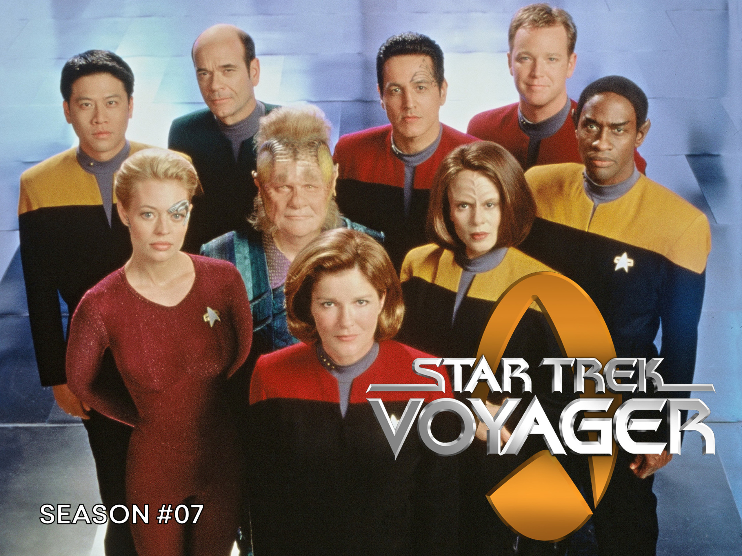 The seventh season of Star Trek: Voyager features a strong and memorable main cast led by Kate Mulgrew as Captain Kathryn Janeway, the determined and inspiring commander of the USS Voyager. Alongside her is Robert Beltran as Chakotay, her loyal first officer with a Maquis background, and Roxann Dawson as B’Elanna Torres, the fiery chief engineer who also comes from the Maquis. Robert Duncan McNeill plays Tom Paris, the skilled conn officer, while Garrett Wang portrays Harry Kim, the dedicated operations officer. Tim Russ is Tuvok, the calm and logical chief of security, and Robert Picardo brings to life The Doctor, the ship’s holographic medical officer with a unique personality. Jeri Ryan joins as Seven of Nine, a former Borg drone whose journey of reclaiming her humanity is central to the later seasons. Ethan Phillips adds warmth as Neelix, the ship’s chef and morale officer. Jennifer Lien, who played Kes, had left the series before season seven, but her early presence helped shape the crew dynamic. This ensemble cast created a close-knit crew that viewers grew to love over the series’ long voyage through the Delta Quadrant.