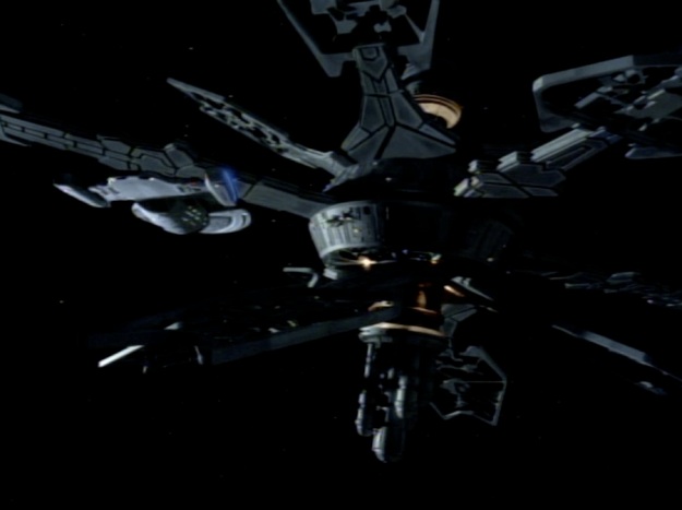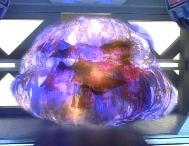 Crew aboard Voyager encountering the Caretaker’s powerful energy grid