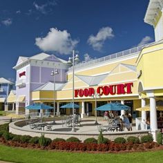 Colorful storefronts and vibrant signs at Tanger Outlets Foley.