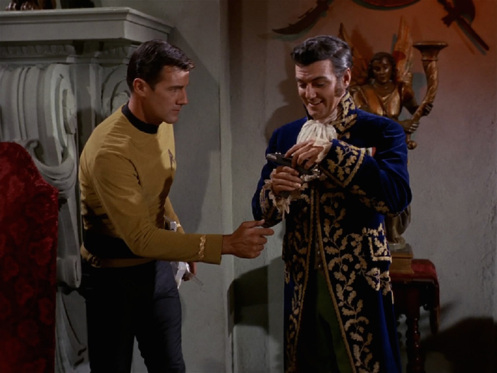 Trelane’s powers seem nearly limitless, allowing him to manipulate matter and energy, making escape difficult for Kirk and his crew. The episode explores themes of childish arrogance and the consequences of unchecked power, with the Enterprise crew ultimately needing to outsmart Trelane to regain their freedom. William Campbell’s portrayal of Trelane is often praised for bringing charm and menace to the character, making this episode a fan favorite for its mix of whimsy and suspense.