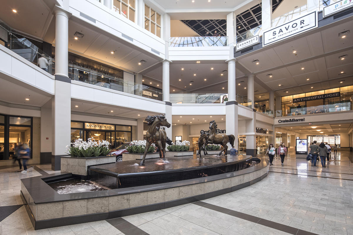 The Westchester, located at 125 Westchester Avenue in White Plains, NY, is a premier shopping destination that opened its doors in 1995. It stands on a site rich in history, once home to one of the first suburban branch department stores and a former railway terminal. Today, The Westchester offers an upscale shopping experience with over 150 stores, including well-known names like Nordstrom, Neiman Marcus, Tiffany & Co., and Burberry. The mall is designed with elegance in mind, featuring skylights that flood the space with natural light, marble and carpeted floors, and commissioned sculptures that add a touch of art and sophistication.