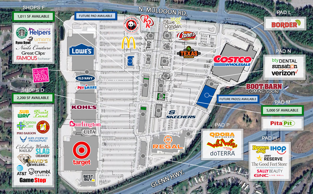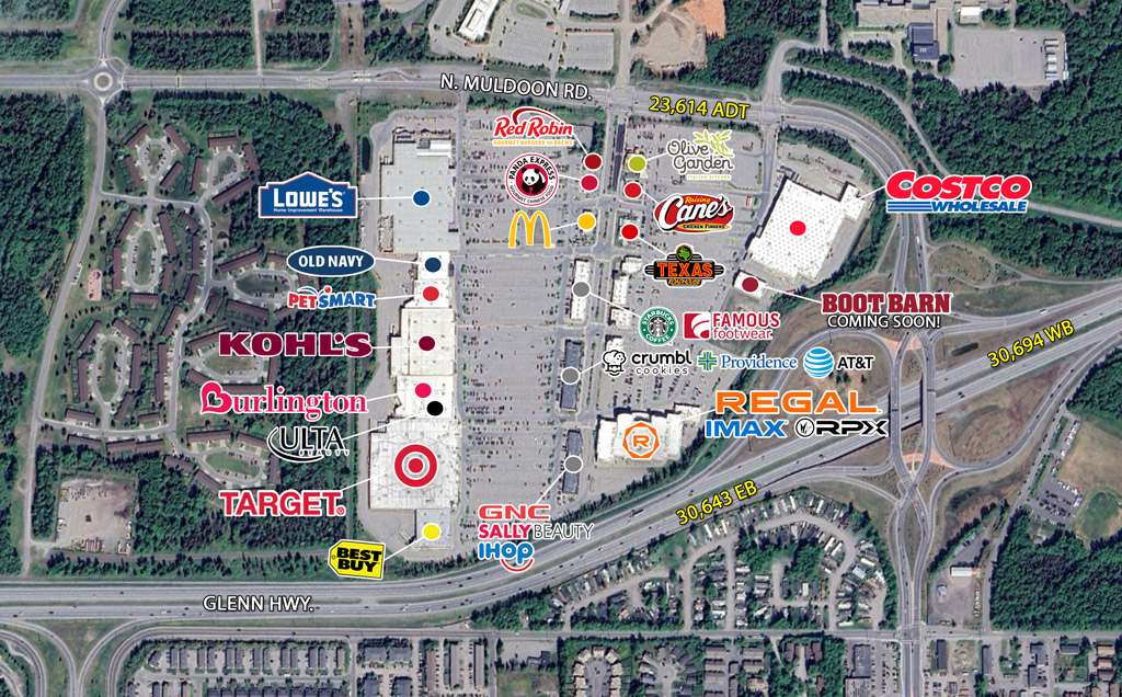 Tikahtnu Commons at 1142 N Muldoon Rd in Anchorage, AK, is a vibrant shopping destination that offers a fantastic mix of stores and dining options. Anchored by big names like Target, Lowe’s, Kohl’s (the only one in Alaska), and Costco, it’s a convenient spot for everything from groceries to home goods. You’ll also find popular stores like Best Buy, Old Navy, and Ulta Beauty, making it easy to shop for electronics, fashion, and beauty products all in one place.