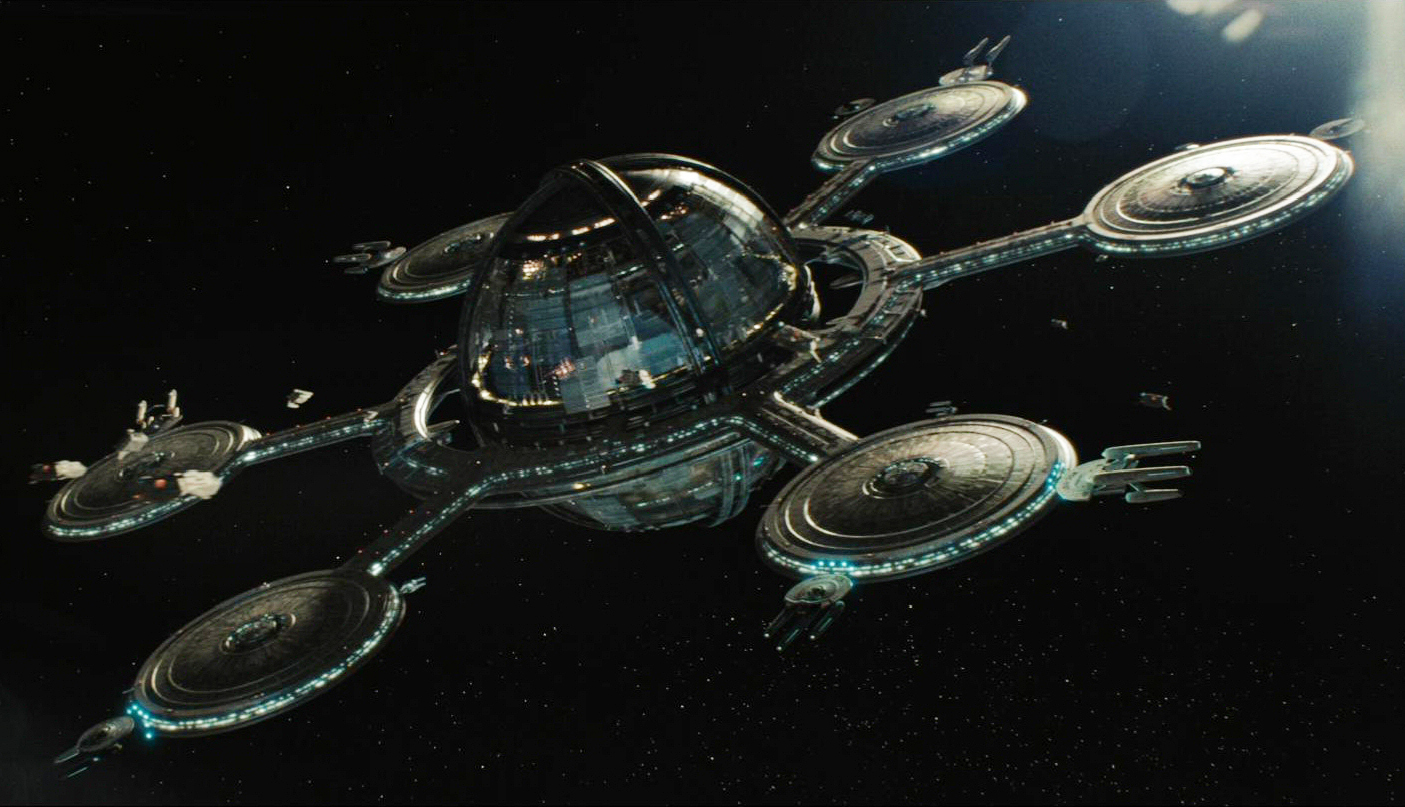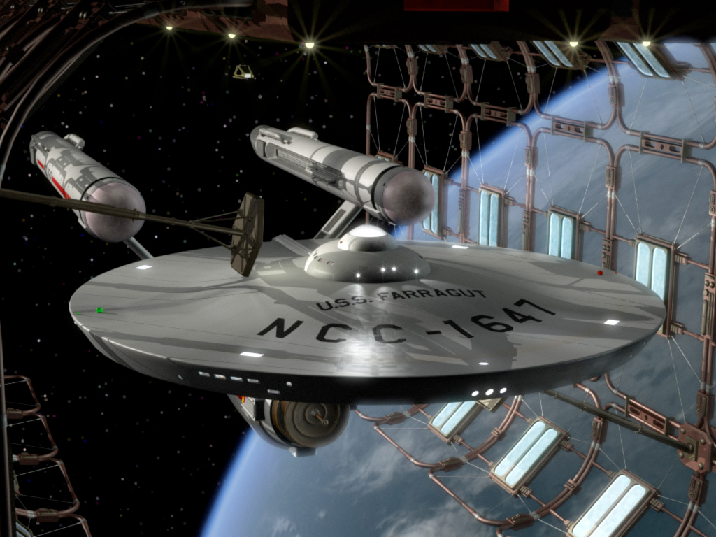 Starship U.S.S. Farragut soaring through space in Star Trek